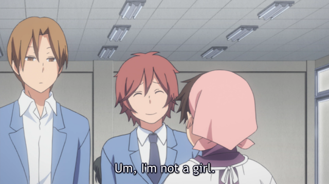 Don't be fooled by that pretty face. Man, I never get tired of those Shun moments. It's that hair~! Even though it's a lot shorter than it used to be, it still manages to cause confusion. But anyway, this episode was not about Shun or his hair. This episode was about Yuki and that lunch lady . . . and her curly hair :P