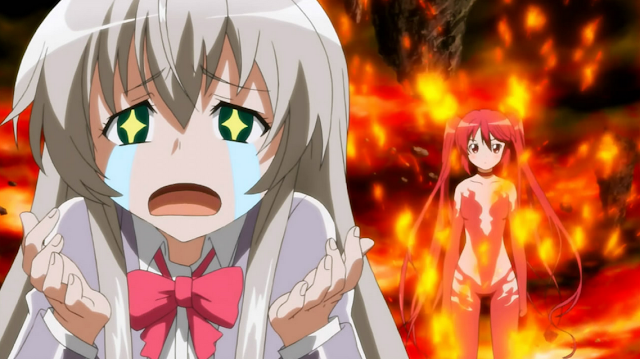 Of course, every love story must carry drama. I just wasn't expecting Yuri. Cthuko(red head) is Nyaruko's childhood friend, but of a different species and in their world a different species indicates an enemy. However, Cthuko has always loved Nyaruko and according to her, if she can't have her no one will. Yandere much? I feel bad for Mahiro.